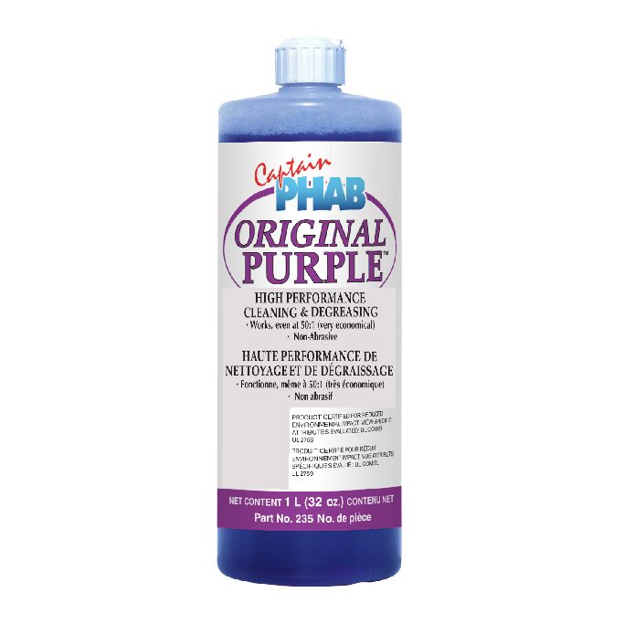 Original purple removes grease, oil, stains, odors, smoke, food stains, mold, pet accidents, tar, wax, air borne dirt, sap and many others. Provides effective solvency and is an effective replacement to harmful butyl based cleaners.